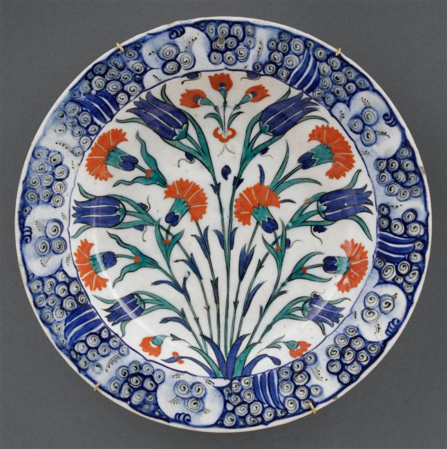 La « tulipe ottomane », mince, élancée, légèrement renflée à la base, en forme de lyre avec des pétales en pointe, connaît un énorme engouement à Istanbul, pendant toute la période ottomane. Symbole de richesse, mais aussi d’art et d’esthétique, elle est le thème favori des artistes qui la reproduisent sur de nombreux supports, que ce soient les manuscrits enluminés, les miniatures, les reliures, les céramiques, les textiles, tapis de prière, caftans, pièces d’orfèvrerie, mobilier, pierres tombales.